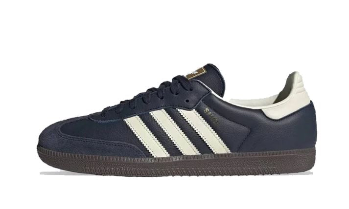 A timeless streetwear icon, the Samba OG returns in a sleek Night Navy and Cream White colorway. Staying true to its original design, this sneaker features a premium mix of smooth leather and soft suede, delivering both heritage and style.