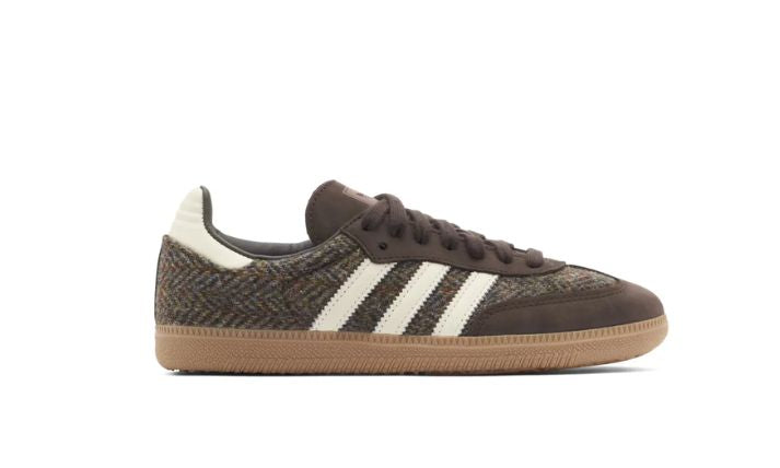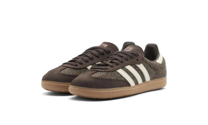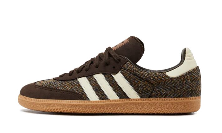 Heritage style meets elevated craftsmanship in the Adidas Samba OG 'Dark Brown Tweed' — a refined take on the iconic silhouette. Known for its football roots and timeless appeal, this edition brings a sophisticated twist through rich textures and earthy tones.