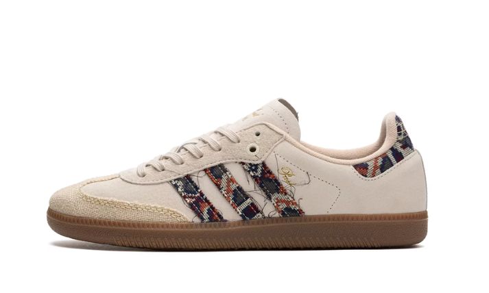 The upper combines premium leather and suede in soft, muted tones, evoking a sense of retro elegance. Subtle detailing like stitched overlays, textured finishes, and a vintage-style gum sole reflect the shoe’s connection to the past while maintaining the clean lines and profile of the classic Samba.