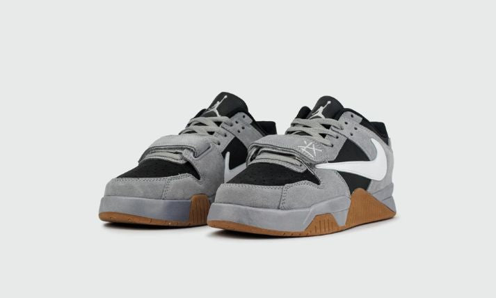 Step into the future of streetwear with the Air Jordan Cut The Check x Travis Scott 'Grey Gum' — a bold fusion of classic Jordan design and Travis Scott's disruptive aesthetic. This ultra-limited edition sneaker features a layered mix of premium black and grey suede, delivering a sleek, tonal look with texture and depth.